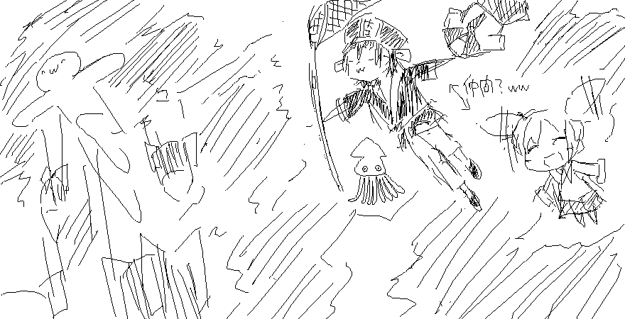 …むふっ。水着描けてなんか嬉しくなった。アナログでの落書きしか描いたこと無かったから…。コスプレとか時たま生き抜きで描いてみるとほんと面白いですね。時々度が過ぎると新たな話とか出来てきて妄想の域に達します。 はいはい自重自重ー。